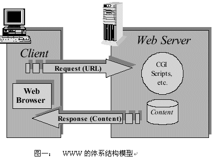 語音應用協(xié)議的體系結(jié)構(gòu)類似于WWW的體系結(jié)構(gòu)和WAP的體系結(jié)構(gòu),圖一是WWW的體系結(jié)構(gòu):