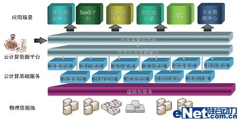 企業(yè)云通過采用硬件設備虛擬化、軟件版本標準化、系統(tǒng)管理自動化和服務流程一體化等手段,把傳統(tǒng)的數(shù)據(jù)中心建設成為一個以服務為中心的運行平臺,資源的使用方式從專有獨占方式轉(zhuǎn)變成完全共享方式,運行環(huán)境可以自動部署和調(diào)整資源分配,實現(xiàn)資源隨需掌控,從而幫助客戶建立一個基于業(yè)務的資源共享、服務集中和自動化的開放數(shù)據(jù)中心。