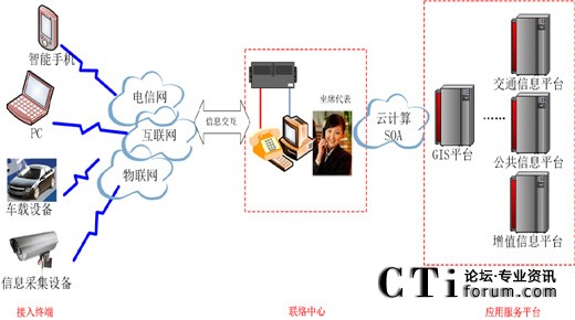 應用服務平臺:以GIS平臺為主,配合交通信息平臺、公共信息平臺以及餐飲酒店娛樂信息服務平臺、社交網(wǎng)站服務平臺、車輛服務信息平臺、應急救援服務平臺、媒體內(nèi)容服務平臺等各類型的應用服務,根據(jù)應用需求提供相應的服務和數(shù)據(jù)。各應用服務通過云計算、SOA、數(shù)據(jù)總線等技術(shù)實現(xiàn)互聯(lián)互通、信息共享,同聯(lián)絡中心應用集成,并通過聯(lián)絡中心向用戶提供服務。