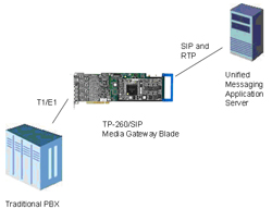 大量的下一代 UM 平臺(tái)都被設(shè)計(jì)為使用 SIP 作為應(yīng)用和外部世界之間唯一的接口。 將關(guān)注的重點(diǎn)集中于 SIP 可以為開發(fā)人員帶來許多好處,但會(huì)為 VAR/集成商帶來將 UM 應(yīng)用與現(xiàn)有 PBX 設(shè)備進(jìn)行接口方面的挑戰(zhàn)。 解決的方法是使用媒體網(wǎng)關(guān)來提供PBX 上 TDM 接口和 UM 應(yīng)用的 SIP 接口之間的轉(zhuǎn)換。