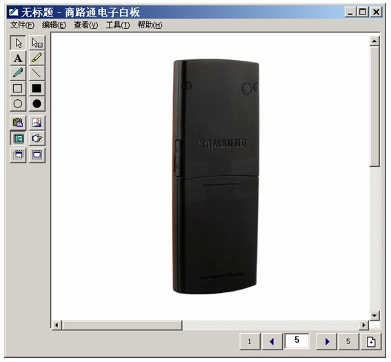 坐席進入富媒體知識庫,調(diào)出三星手機,啟動電子白板,將這個畫面推送給客戶。