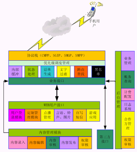 該平臺(tái)可以廣泛地應(yīng)用于SP運(yùn)營系統(tǒng)和多種行業(yè)的短信息應(yīng)用。
