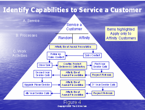 圖4中的全部圖片推翻了所需的服務(wù)客戶的行動。這兩種方法提供了不同的過程以達(dá)到這個結(jié)果。在這個部分的底部,C. 工作行動,這些方格體現(xiàn)了頂端開始的行動,和經(jīng)歷之前描述的獲得和保持客戶的過程。