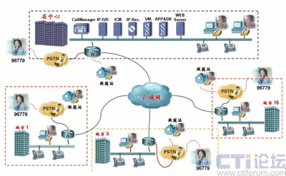 如上圖所示,由于Cisco IPCC是基于標(biāo)準(zhǔn)IP網(wǎng)絡(luò)的純IP呼叫中心解決方案,呼叫中心的核心設(shè)備都只部署在省中心機房,其它地市只需要在原有網(wǎng)絡(luò)的路由器上添加語音模塊即可實現(xiàn)PSTN語音的本地接入,而無需再各地市購買額外的接入設(shè)備。而同樣由于IP網(wǎng)絡(luò)的特性,呼叫中心的坐席可以根據(jù)需要部署在甘肅省運輸管理局IP網(wǎng)絡(luò)可達(dá)的任何一個地方,各地市的坐席只需要配備IP電話和座席PC即可。來自PSTN的電話根據(jù)用戶在IVR中的選擇和其它路由策略,自動分配到最適合的坐席處理,譬如來自白銀的運政投訴由白銀市本地的運政大廳座席人員處理。