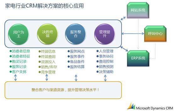 Techsun家電行業(yè)CRM解決方案基于Microsoft Dynamics CRM這一優(yōu)秀平臺,實(shí)現(xiàn)了對客戶、渠道資源的統(tǒng)一客戶,對銷售、市場、服務(wù)職能的全面支持,滿足了復(fù)合渠道整合的管理需求。Microsoft Dynamics CRM基于SOA架構(gòu),具有易集成的特點(diǎn),滿足了家電行業(yè)多種復(fù)雜異構(gòu)系統(tǒng)的集成需求。