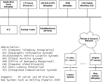 結(jié)合HP公司在全球范圍內(nèi)911應急系統(tǒng)和安全領(lǐng)域的建設經(jīng)驗和案例,HP公司針對國內(nèi)對公共安全建設的需求,提供了公共安全系統(tǒng)的建設架構(gòu)和解決方案