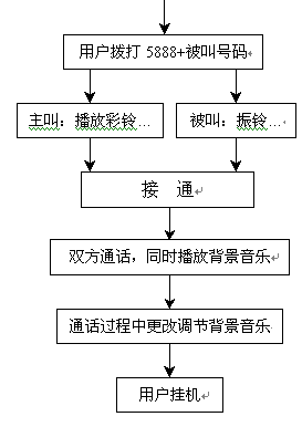 彩話業(yè)務(wù)即"個(gè)性多彩化語(yǔ)音通話"業(yè)務(wù),又叫背景音效業(yè)務(wù),是電信運(yùn)營(yíng)商新近推出的一種增值業(yè)務(wù),能在通話的過(guò)程中給通話的雙方提供背景音樂(lè)或者情景音效,并可以根據(jù)不同的被叫用戶分類(lèi)提供不同的背景音效,以達(dá)到烘托通話氣氛、交流情感的作用,以下是彩話業(yè)務(wù)的基本流程圖及功能簡(jiǎn)介: