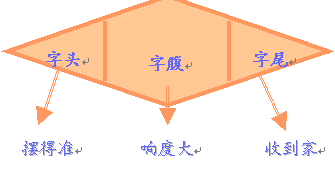 字腹:字音延伸發(fā)展的高潮階段,是字音的中心和主體,是整個(gè)字音發(fā)生過(guò)程持續(xù)時(shí)間最長(zhǎng)最響亮的部分