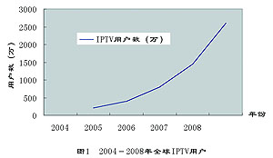 圖1 2004-2008年全球IPTV用戶發(fā)展預(yù)測