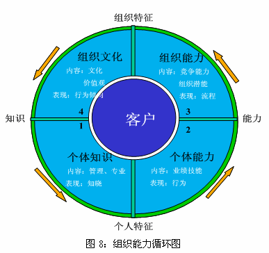 組織能力循環(huán)圖說(shuō)明,管理者不僅要關(guān)注對(duì)組織中個(gè)體層次特性的管理,如個(gè)體知識(shí)、個(gè)體能力,更要關(guān)注組織層次特性的管理,如組織能力和企業(yè)文化。只有管理者將目光由個(gè)體能力轉(zhuǎn)向組織能力時(shí),即更注重組織層次的能力建設(shè)時(shí),組織才會(huì)真正地成長(zhǎng)和發(fā)展。