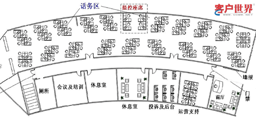 運營部工作區(qū)域是東方航空呼叫中心物理構成最主要的部分。主要分為前臺、座席區(qū)、客戶關懷組工作區(qū)、員工休閑活動區(qū)域及休息室、更衣室、會議室及運營管理辦公室。