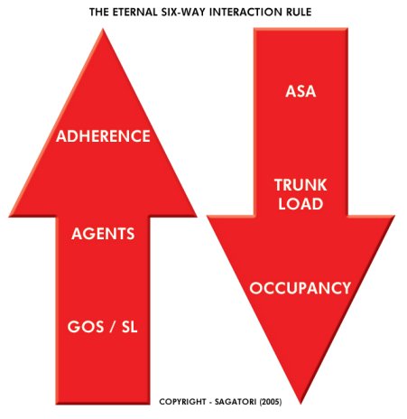 以Inbound坐席員為例,SAGATORI提出的KPI就只有兩個:日程遵守度和質(zhì)量。這里邊首先包含了對呼叫中心運(yùn)行邏輯和動力傳遞機(jī)制的透徹理解。SAGATORI把它總結(jié)為“呼叫中心永恒不變的6條法則”,以下是一個簡單圖示(詳細(xì)解釋在此省略):
