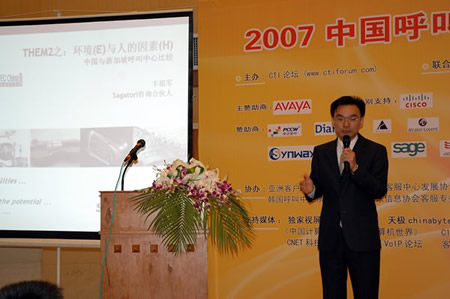 2007年4月18日至20日,2007中國呼叫中心及企業(yè)通信大會在上海光大會展中心國際大酒店隆重召開,以下是專題演講實錄:主持人(李京成):各位早上好,大會的第三天了,時間像飛一樣的快,今天很多朋友都帶著行李來的,結束就準備回家了。今天仍然有兩個分論壇在這個分論壇主題是呼叫中心在海外,另外一個分論壇在十號廳,都有非常優(yōu)秀的專家給大家提供精彩的演講。今天我們第一位給大家演講的大家并不陌生,我們的老朋友豐祖軍先生,有請豐祖軍先生。豐祖軍先生是在國內(nèi)是一個非常資深的呼叫中心運營管理專家,我們經(jīng)常在一起合作。在此他演講之前,要做好思想準備跟上他的跳躍思維,不然會落后,他的思維非常快,表達也非?,他演講的題目是環(huán)境與人的因素-中國與新加坡呼叫中心的比較,下面把時間交給豐祖軍先生。