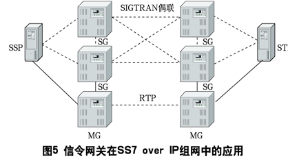 而下一代交換網(wǎng)中的信令網(wǎng)關(guān) SG是No.7信令網(wǎng)與IP網(wǎng)的邊緣接收和發(fā)送信令消息的信令代理,對信令消息進(jìn)行中繼、翻譯或終結(jié)處理。其實(shí)質(zhì)就是為了實(shí)現(xiàn)PSTN端局與軟交換設(shè)備之間的No.7信令互通,實(shí)現(xiàn)信令承載層電路交換與IP分組的轉(zhuǎn)換功能。信令網(wǎng)關(guān)在No.7信令網(wǎng)和IP網(wǎng)的邊緣對呼叫信令進(jìn)行實(shí)時(shí)轉(zhuǎn)接或協(xié)議轉(zhuǎn)換。因此,信令網(wǎng)關(guān)可以在呼叫控制、智能網(wǎng)以及移動網(wǎng)中提供多種多樣的應(yīng)用。