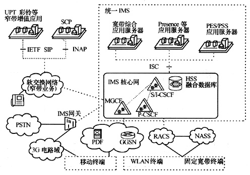 從國(guó)際標(biāo)準(zhǔn)化組織的研究來看,IMS的網(wǎng)絡(luò)架構(gòu)是覆蓋3G終端和固定寬帶終端的統(tǒng)一IMS。3GPPR7研究的是支持移動(dòng)和固定接入的統(tǒng)一IMS,ETSI