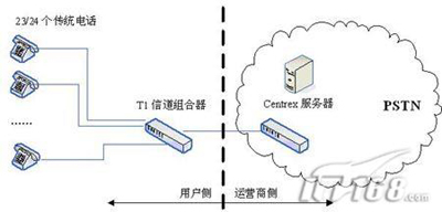 相反,在傳統(tǒng)的PBX或新興的IP-PBX中,這些功能模塊通常配置在用戶側(cè)的網(wǎng)絡(luò)元素上,而且通過一條或多條專用線路T1(傳統(tǒng)PBX)或DSL(新興PBX)連接到中心辦公室,用PSTN的連接。圖1說明了PBX和Centrex服務(wù)的區(qū)別。而且,DSL還能在相同的鏈路支持語音和數(shù)據(jù)的傳輸,而且維護(hù)鏈路的成本也遠(yuǎn)遠(yuǎn)小于維護(hù)T1所需的代價(jià)。另外,由于呼叫控制能夠在本地裝載,而IP-PBX能夠支持Internet連接,因此每23(T1-PRI)或24(T1-CAS)個(gè)電話終端就不再需要一條專用線路T1的支持了。(后續(xù)將進(jìn)一步說明)