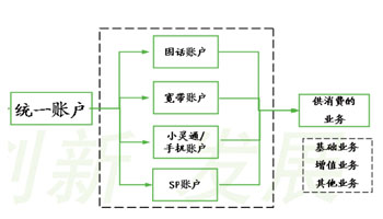 由于目前我國(guó)的信用體系尚不完善,所以,電信企業(yè)自身需要首先完善企業(yè)級(jí)的客戶信用體系,而設(shè)立統(tǒng)一實(shí)名制賬戶是完善客戶信用體系的有效途徑。首先,建立實(shí)名制賬戶便于固網(wǎng)運(yùn)營(yíng)商構(gòu)建相對(duì)完整、準(zhǔn)確的客戶信息資料庫(kù)。其次,通過(guò)建立統(tǒng)一賬戶,可以將目前彼此孤立的固定電話、小靈通、寬帶、未來(lái)的手機(jī)業(yè)務(wù)及增值業(yè)務(wù)等各子消費(fèi)賬戶相關(guān)聯(lián),從而方便運(yùn)營(yíng)商建立客戶業(yè)務(wù)記錄,以及對(duì)多消費(fèi)賬戶進(jìn)行統(tǒng)一的信用管理。第三,運(yùn)營(yíng)商可以針對(duì)統(tǒng)一賬戶的消費(fèi)總額提供積分獎(jiǎng)勵(lì),增加用戶黏度。統(tǒng)一賬戶與各消費(fèi)賬戶的關(guān)聯(lián)關(guān)系如圖4所示。