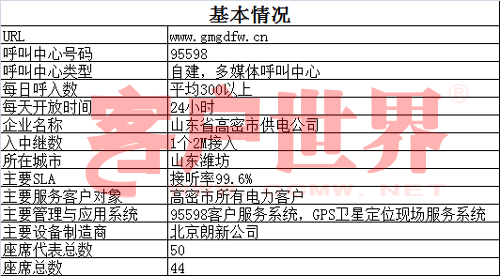 山東省高密市供電公司95598客戶服務(wù)調(diào)度指揮中心