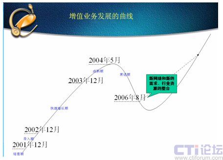 我以增值業(yè)務(wù)為例,講講如何做好過冬的準(zhǔn)備。首先過冬需要有‘糧’,而‘糧’的大部分是生意好時留下來的,還有在困難時候有新的經(jīng)濟來源,而新的經(jīng)濟來源也是要培育期的。最好的辦法是在生意紅火時,根據(jù)對市場的判斷,進行前期的準(zhǔn)備與技術(shù)的開發(fā)。在2003年增值業(yè)務(wù)進入快速增長期時,我就開始考慮下一步發(fā)何走。