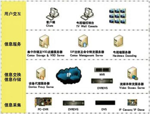 信息交換指將采集到的信息使用標(biāo)準(zhǔn)協(xié)議進(jìn)行封裝,通過IP網(wǎng)絡(luò)將封裝的信息交換到目標(biāo)主機(jī),目標(biāo)主機(jī)對信息進(jìn)行處理,以便提供各類信息服務(wù)功能,如集中存儲(NVR)、信息檢索、VOD