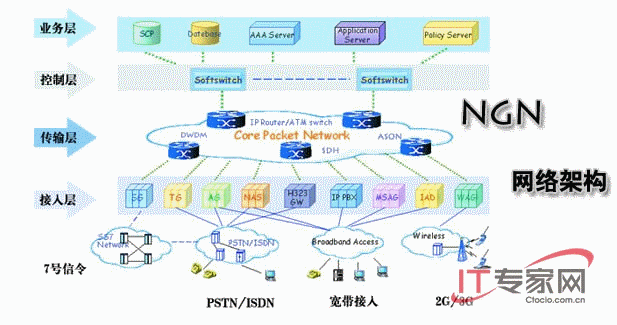 各國(guó)的運(yùn)營(yíng)商對(duì)下一代網(wǎng)絡(luò)NGN的發(fā)展戰(zhàn)略也進(jìn)行了大規(guī)模的調(diào)整,不再只是關(guān)注軟交換和IMS,而是更多地考慮通過(guò)承載網(wǎng)和接入網(wǎng)層面的技術(shù),來(lái)構(gòu)建未來(lái)的網(wǎng)絡(luò)基礎(chǔ)設(shè)施。