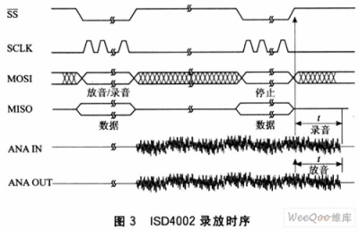 器件便從00地址開(kāi)始錄音,一直到出現(xiàn)OVF(存儲(chǔ)器末尾)時(shí),錄音停止。其工作時(shí)序如圖3所示。