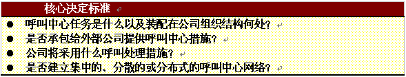 。。當(dāng)一個(gè)公司考慮將呼叫中心納入其整體服務(wù)策略的時(shí)候,在具體步驟開始以前必須作一些基本的決定。重要的是評(píng)估該公司當(dāng)前的服務(wù)策略并考慮可能的選擇范圍。本章簡(jiǎn)要總結(jié)了建立呼叫中心可能發(fā)生的一些典型的運(yùn)營(yíng)管理問題。