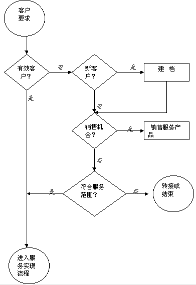 ----在呼叫中心中,面對客戶的流程主要有三大類:核實流程,服務(wù)實現(xiàn)流程和知識流程。我將三個典型的流程圖列出并希望能夠省略文字解釋的篇幅。根據(jù)業(yè)務(wù)類別的不同,圍繞著主要流程還可以有許多子流程。如在銷售型呼叫中心中服務(wù)實現(xiàn)流程中就可能會銷售線索派送跟蹤流程和立即銷售流程等。而在立即銷售流程中可能又會有付款收費流程的等。