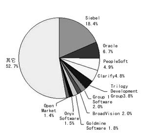 就CRM的廠商來講,市場份額比較分散,而且競爭態(tài)勢變化很快。實際上,除了前五名的廠商外,其它廠商的市場份額不超過2%,其中大多數(shù)CRM廠商是在過去18個月才推出CRM產(chǎn)品。