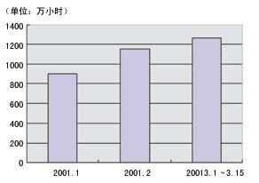 圖3 2001年1月~3月15日OICQ用戶(hù)每日平均在線(xiàn)時(shí)間