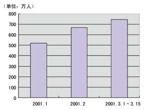 圖4 2001年1月~3月15日OICQ平均每日在線(xiàn)人數(shù)