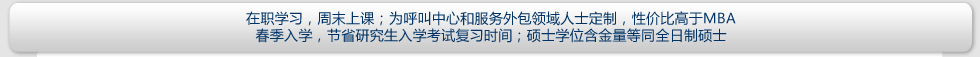 | 報名條件 | 擁護(hù)中國憲法,遵守法律、法規(guī),品行端正,身體健康,并能堅持在職學(xué)習(xí); 大專及以上學(xué)歷,旨在提高本人專業(yè)素質(zhì)和學(xué)歷層次的 社會在職人士均可報名;擇優(yōu)錄取。 呼叫中心、服務(wù)外包領(lǐng)域的中高級從業(yè)者,英語基礎(chǔ)良好的人士將獲得優(yōu)先錄取機(jī)會。 |